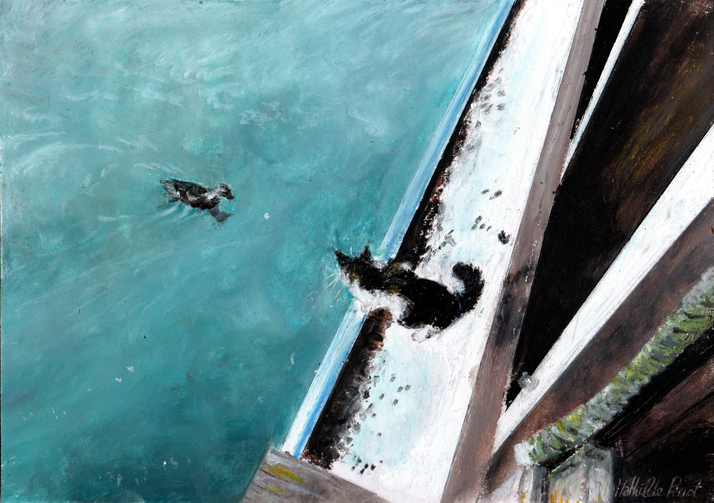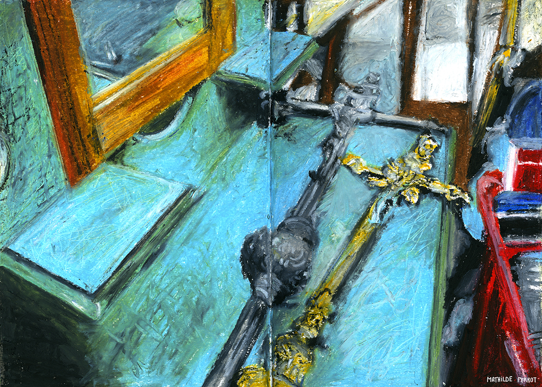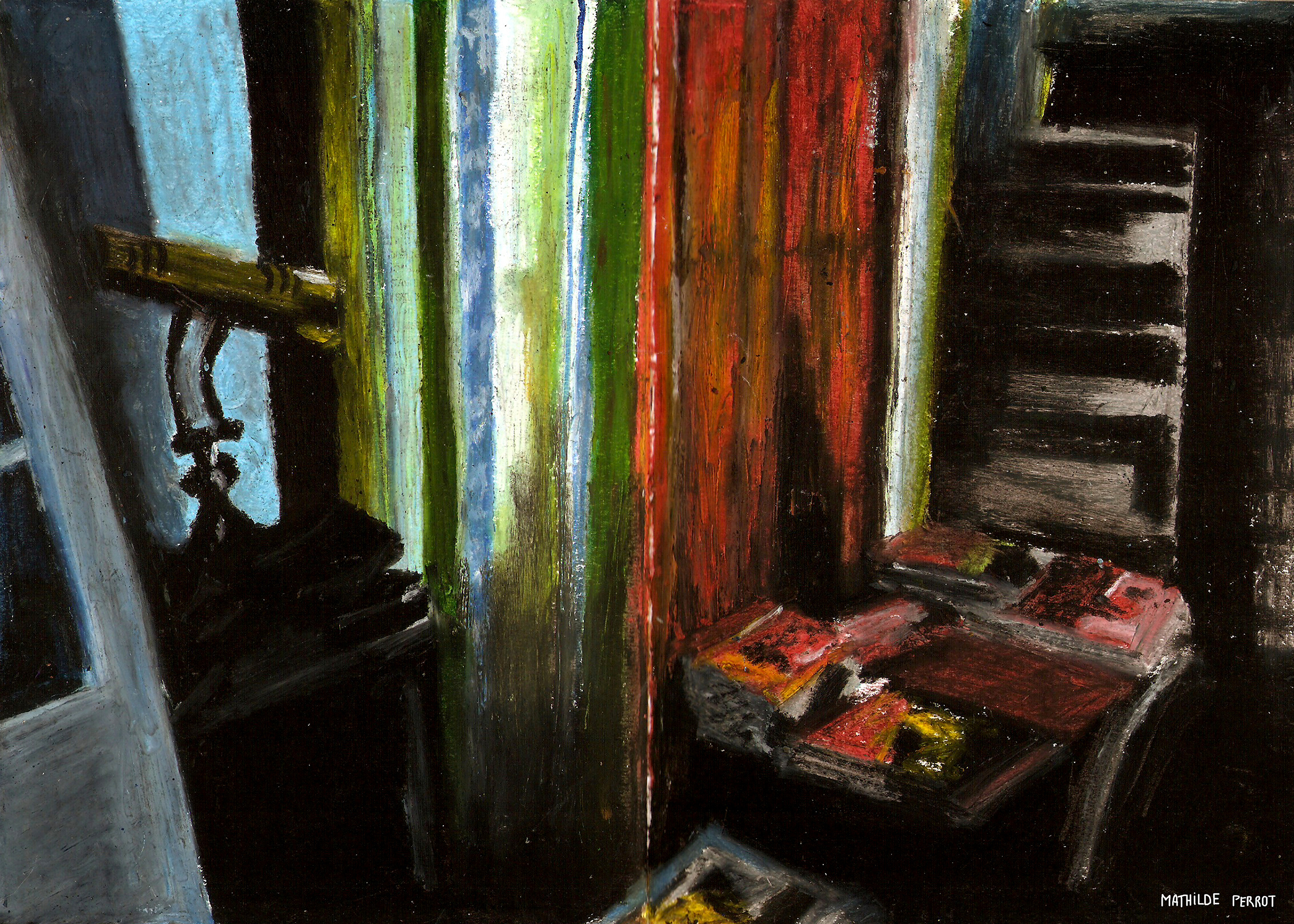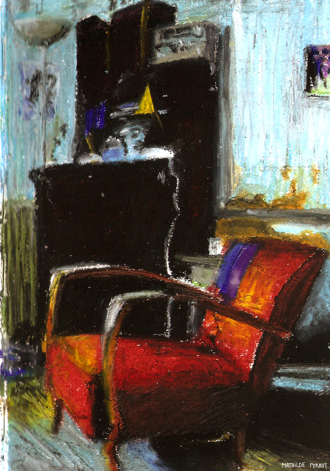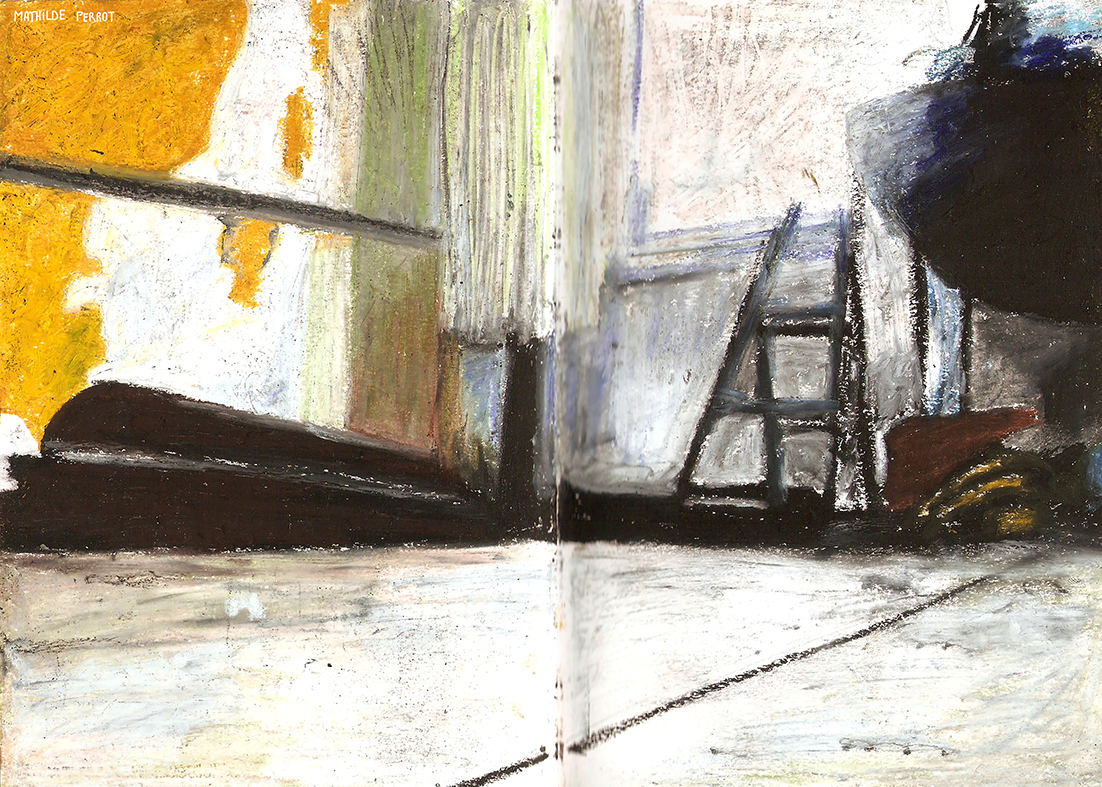 Parfois je dessine au pastel d'après des photographies que je fais en voyage ou au quotidien. Ils ont a la fois quelque chose d'ordinaire et de curieusement étrange. Ces petites images me prennent parfois jusqu'à une journée entière à fabriquer. Je vends les originaux mais aussi des reproductions en format carte postale.