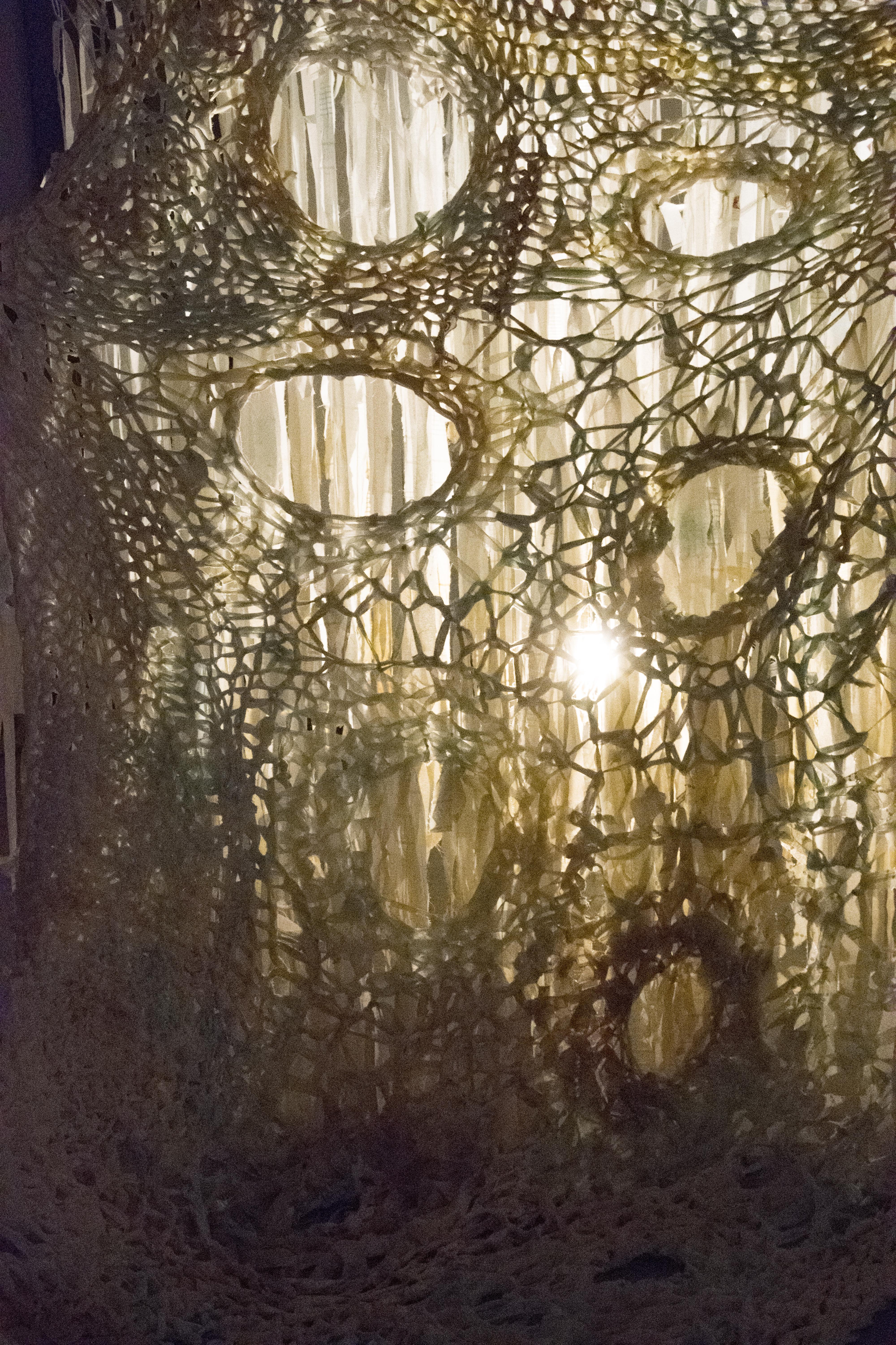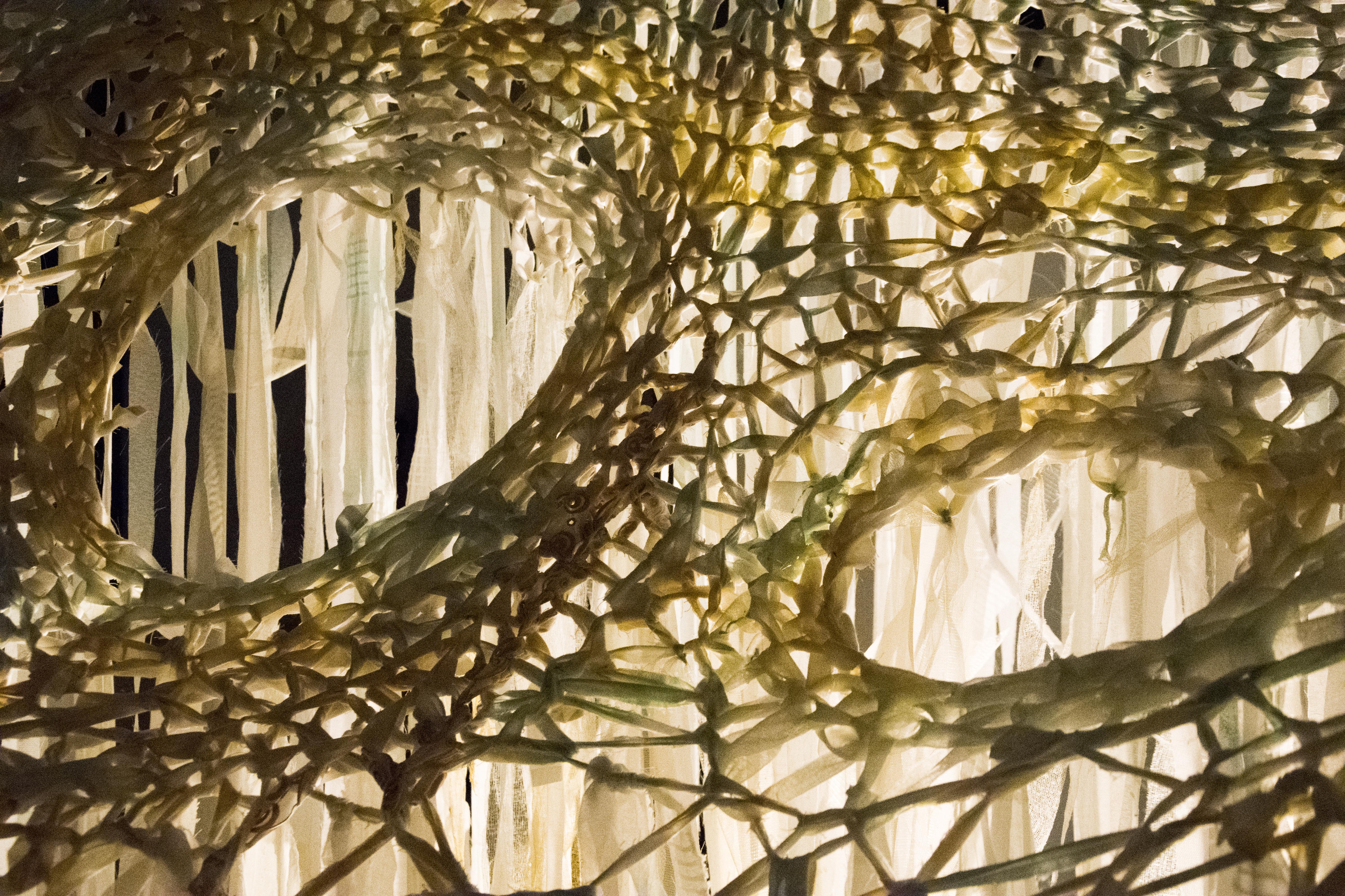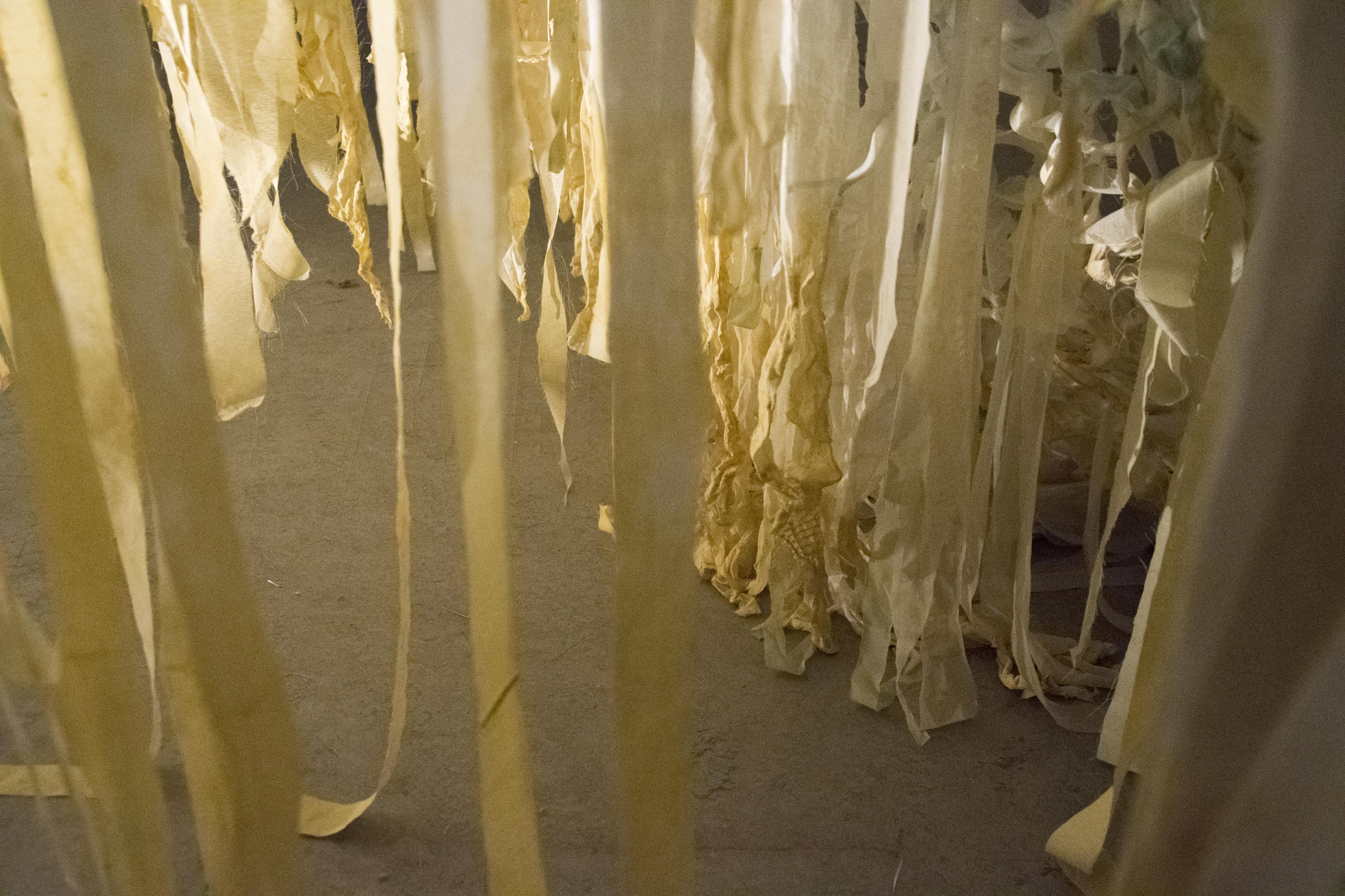 Cette installation imite une vague qui s’élève. Entre le sol et la vague, se trouve la limite que l’on hésite à traverser dans nos rêves. J’ai travaillé sur le profond et mystérieux archétype de l'océan dans l’inconscient collectif. La vague est figée dans son mouvement, on peut tourner autour et l'observer comme un objet de curiosité, pénétrer ses entrailles sans crainte, et en sortir sans difficulté. Alors, peut-être sera-t-il plus facile de traverser la limite la nuit?